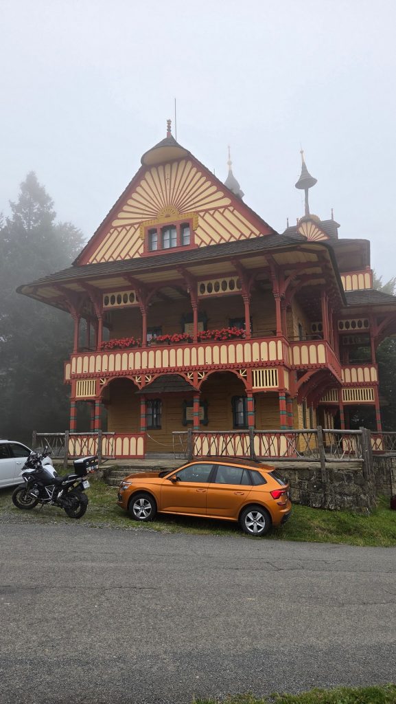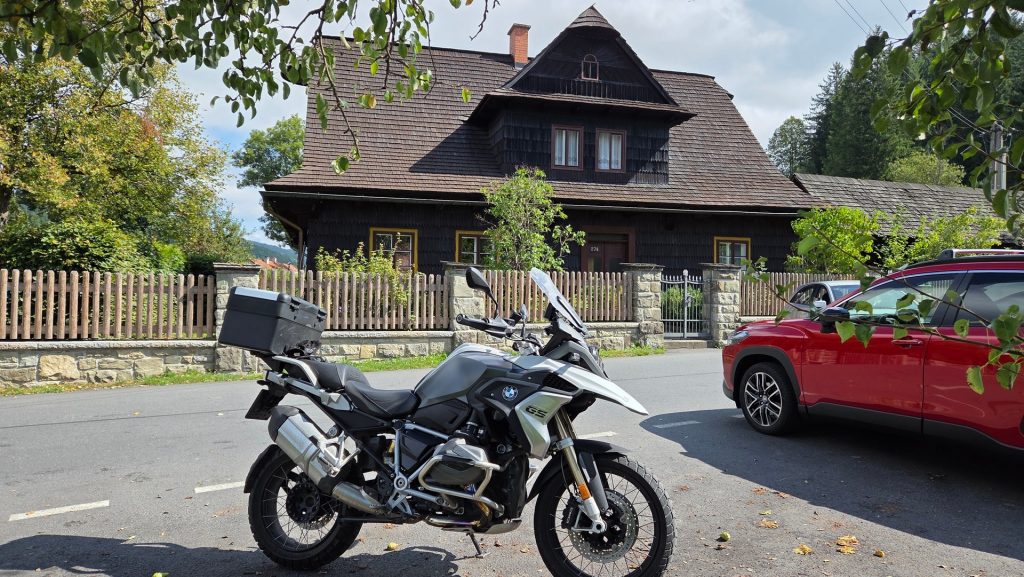 Dzień drugi, miał zacząć się wcześnie bo zapowiadała się ładna pogoda. Nistety po śniadaniu jak się montowałem na motocykl, wracając po resztę gratów złamałem klucz w zamku do pokoju, a spałem na drugim piętrze….Trochę zajęło sforsowanie drzwi ale udało się i tylko wkładka do zamka ucierpiała. Alternatywą był przyjazd “włamywacza” z Ostravy za kilka godzin i za 9000 czeskich koron 😉