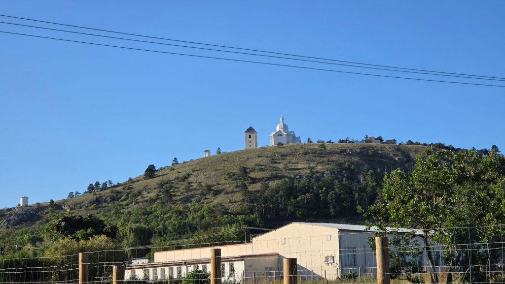 Mikulov z zamkiem i kapliczką w tle