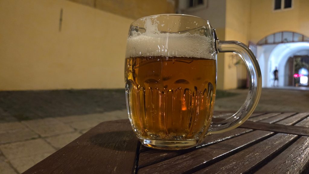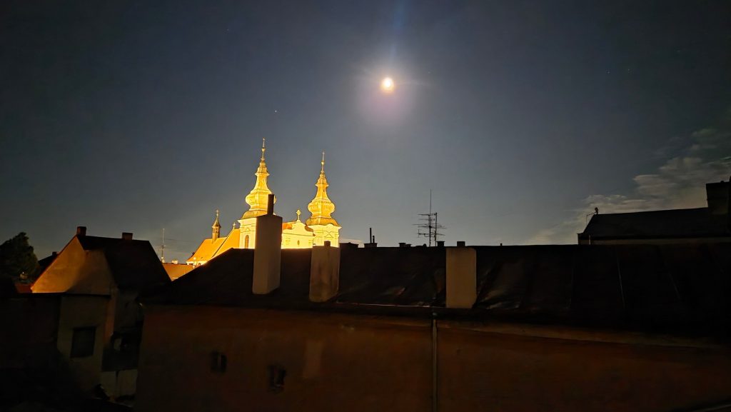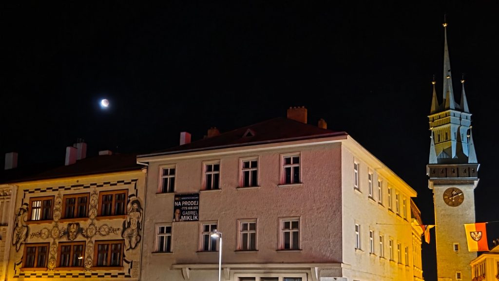 Wieczór i noc spędzam w Znojmie. Jem kolację i obserwuje zaćmienie księżyca. Posmakowałem tez młodego wina Burcak. Piwo smaczniejsze od niego 😉