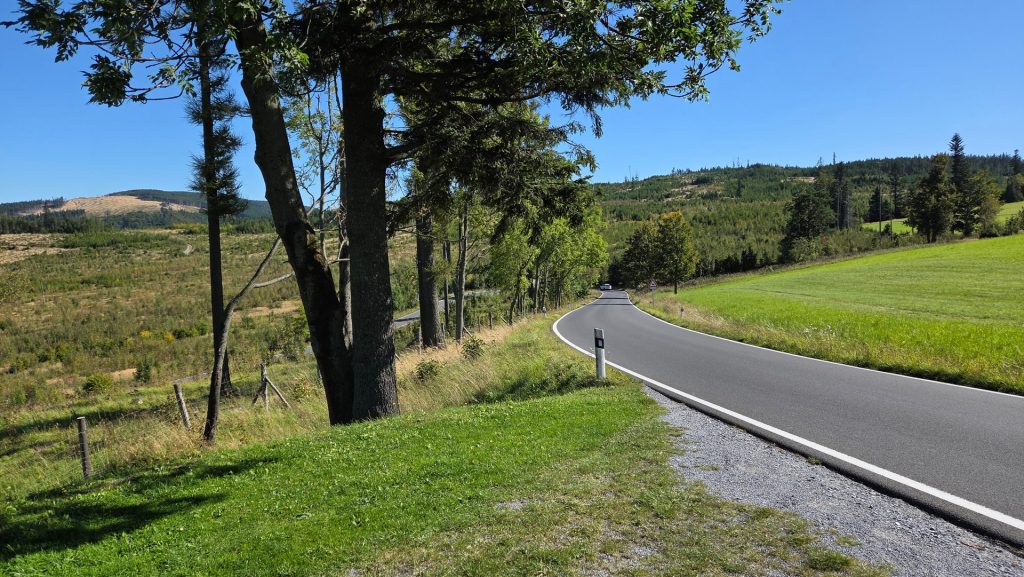 Szybki jednodniowy trip. Oczywiście kierunek Czechy. Tym razem okolice Jesenika. Mega ciepły dzień. W górach było +31 stopni. Bardzo fajne 430km. Odwiedziłem Głuchołazy gdzie nadal trwają prace po zeszłorocznej powodzi. Pokręciłem się po górskich drogach. Przejechałem przez przełęcz na drodze 44, gdzie było mnóstwo motocykli. Niestety ktoś zaliczył solidną glebę. Przez cały dzień żywiłem się lodami (zmarzliną) 😉